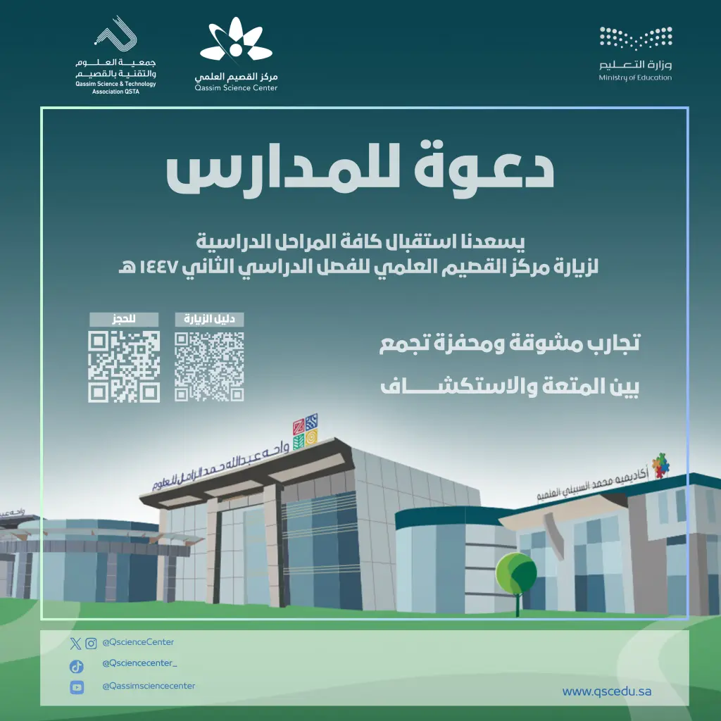 نفتح أبواب المعرفة لطلابنا من جديد، بتجارب علمية تفاعلية وبرامج تعليمية تُلهم الفضول وتنّمي التفكير والابتكار. بادروا بالتسجيل واحجزوا موعد مدرستكم الآن.