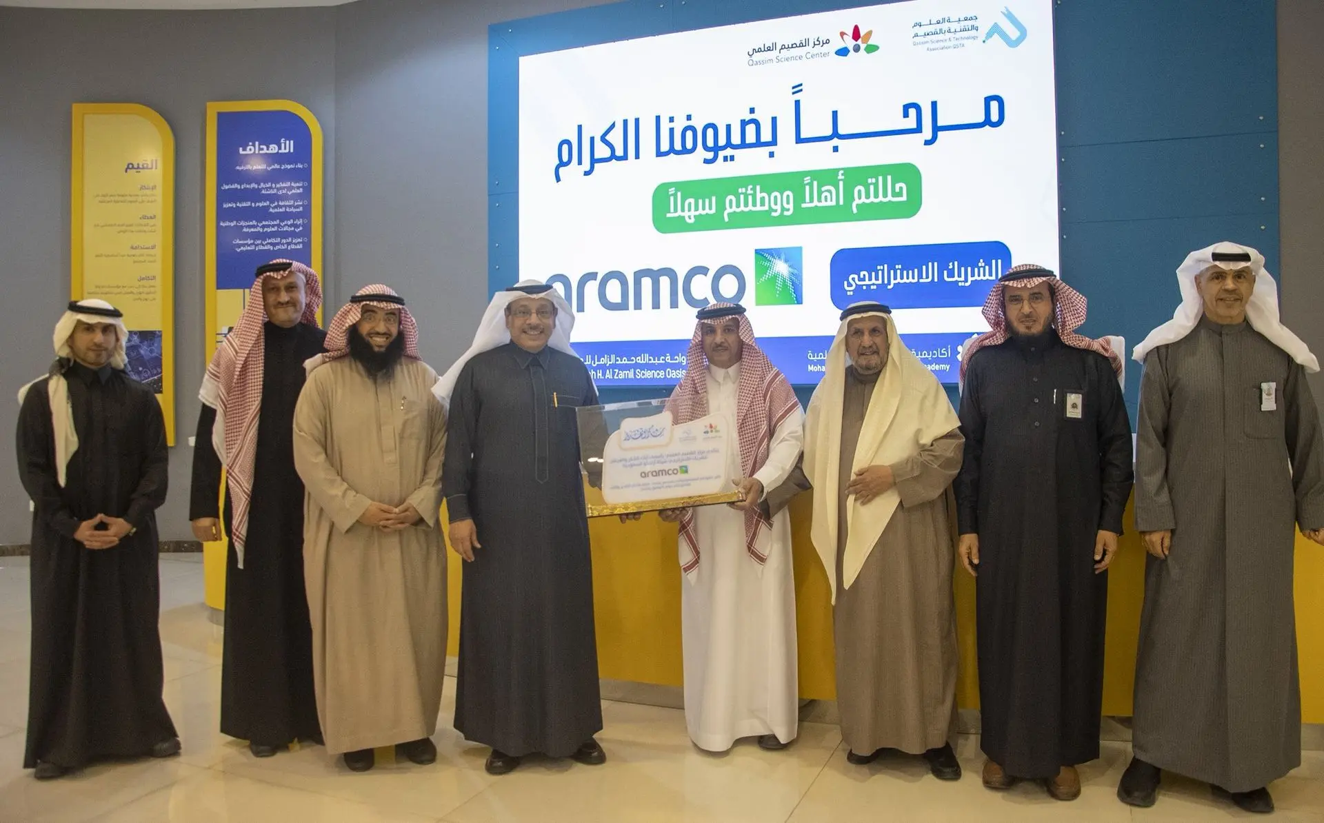 تشرف مركز القصيم العلمي بزيارة سعادة الأستاذ خالد الملحم نائب الرئيس الأعلى لشؤون أرامكو السعودية والوفد المرافق له، وكان في استقبالهم معالي المهندس أسامه الزامل عضو مجلس الأمناء وسعادة الأستاذ عبدالرحمن السليم رئيس مجلس إدارة جمعية العلوم والتقنية و أعضاء المجلس. أطلع الضيوف خلال الزيارة على مرافق المركز، وعلى جناح أرامكو ( الطاقة و النفط ) بعد تطويره، وذلك في إطار تعزيز التعاون ودعم نشر الثقافة في المجتمع.